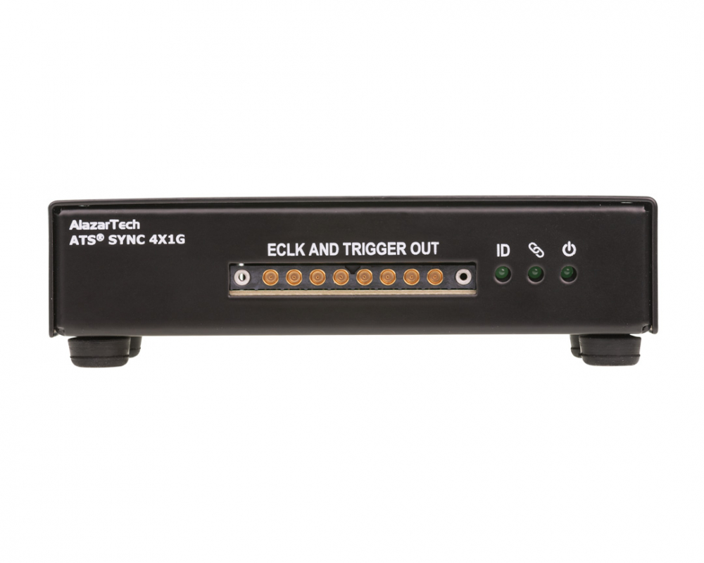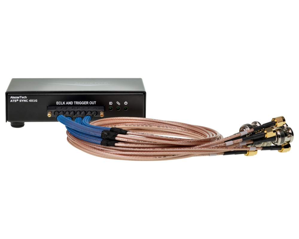 ATS9437: Sync 4X1G is a device that allows simultaneous sampling across multiple independent AlazarTech ATS9437 waveform digitizers. This is achieved by providing common clock and trigger signals to each digitizer.