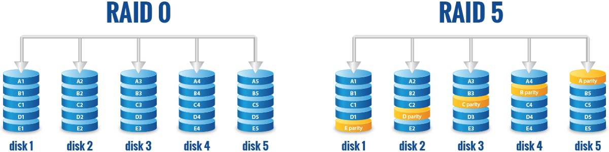 The highest performance gapless streaming systems are based on Redundant Array of Independent Disks (RAID). There are many levels of RAID, but the most popular for gapless streaming applications are RAID0 and RAID5.